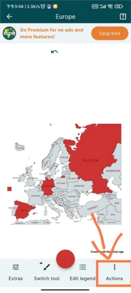 2. 需保证地图编辑完成后,点击右下角的“Actions”按钮。