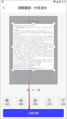 3、对选取框的四条边进行调整,确保所有需要识别的内容都在框内,之后点击“立即识别”。