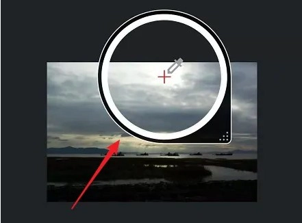 此刻,图片里呈现出一个放大镜图标,而放大镜图标内部出现了吸管。接着,移动这个放大镜。
