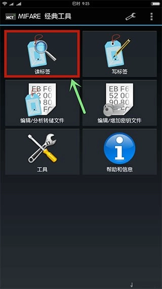 1. 在手机上安装MiFare Classic Tool (MCT),同时打开手机的NFC功能。