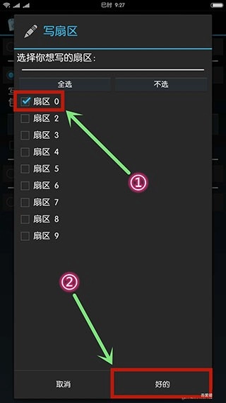 10、仅勾选刚才的“扇区0”数据,接着点击软件最下方的“好的”,执行最终的写入模拟操作。