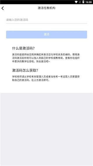 2、登录后进入软件首页,可添加自己的学校机构,输入激活码即可,用户可从学校教务管理处获取激活码。