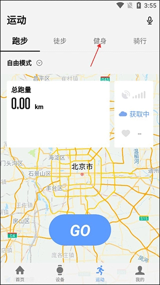 2、进入运动界面后点击健身界面;