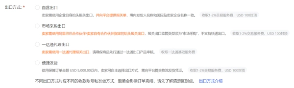d. 出口方式:出口方式选定后,付款前仅有一次修改机会,付款之后则无法再进行修改。