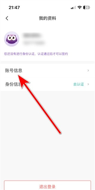 3、随后进入“我的资料”页面,该页面有两个功能,分别是账号信息和身份信息,我们点击【账号信息】。