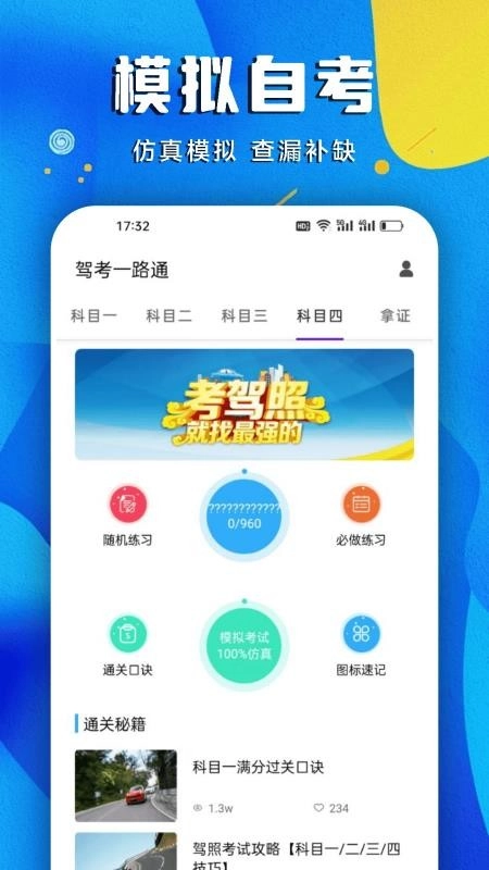 此外,驾考一路通免费版支持用户模拟自考内容,可对相关考试内容进行仿真模拟,更好地查漏补缺,进行专业检验。有需要的用户,赶快到本站使用吧!