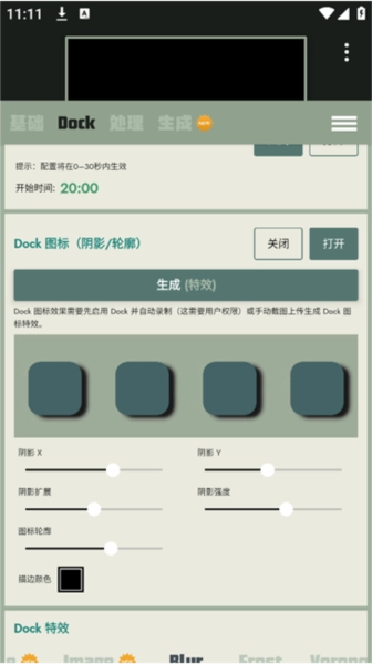 3、在dock标签位置,设有不同特效及其相关参数,可供自由选择、设置与调整。