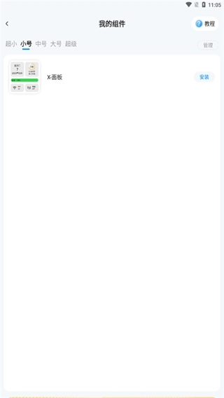 之后我们返回界面看见右上角的我的组件,点击进入即可看见我们好的小组件,点击安装;部分机型可直接点击【安装】将小组件安装到桌面(若无法直接安装请根据下方教程到桌面安装);