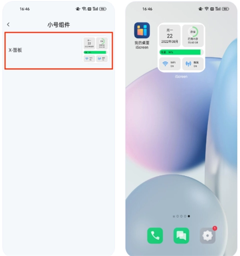 在列表中找到我的桌面iScreen,选择小组件尺寸,点击或拖动小组件到桌面。