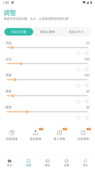 3、进入调整页面后,能够对位置、验证以及大小参数进行调整。
