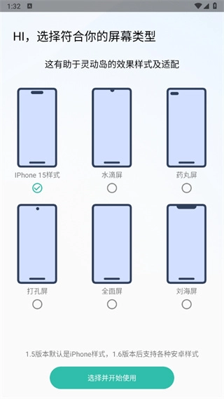 1. 打开软件,挑选一种适合自己的屏幕类型,然后点击【选择并开始使用】。