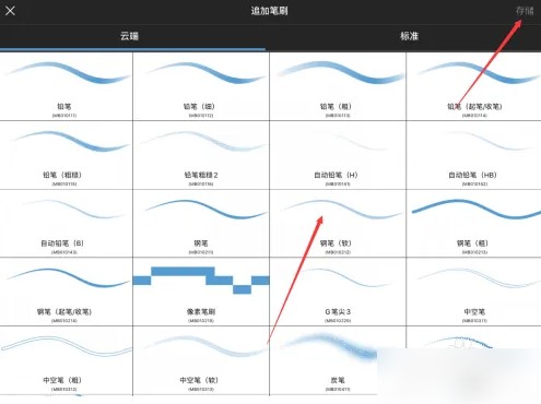 第五步,在云端中能看到众多笔刷,挑选你所需的笔刷,点击进入并存储即可。