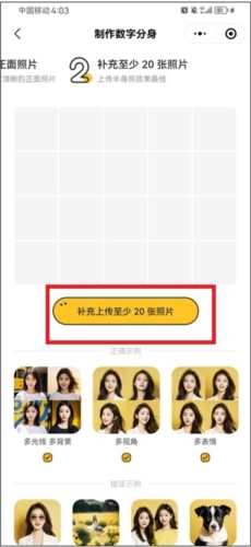3、上传成功之后,再补充上传20张同一人的不同角度表情照片。