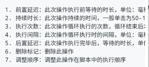 - 启动延迟:指脚本启动后,需等待多少毫秒才开始执行操作。