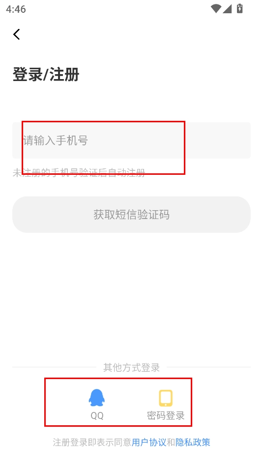 3、最后只需选择要使用的登录方式,支持手机号或QQ登录。