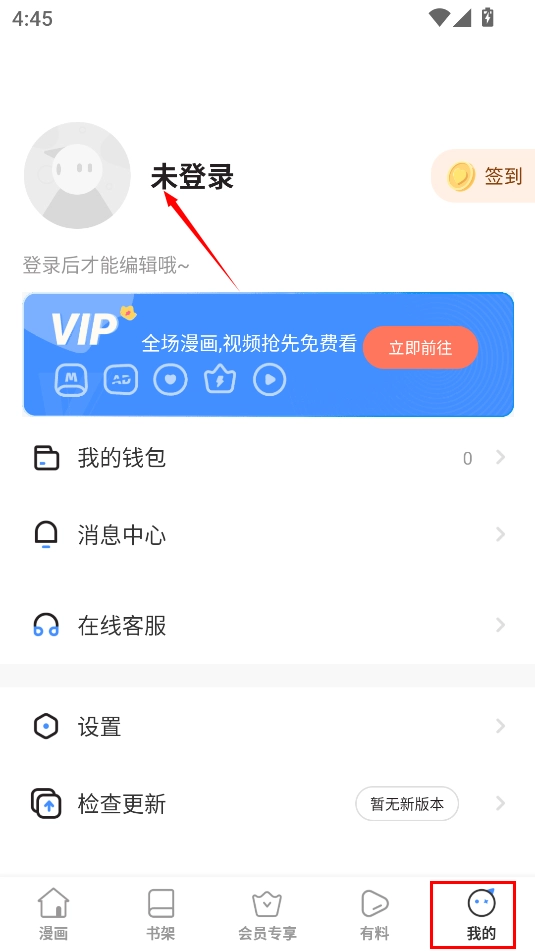 2、随后在软件里切换至“我的”页面,然后点击页面上方的头像。