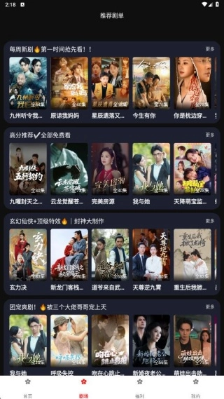 2、剧场页面则汇总了每周新居、高分推荐等不同主题的短剧资源分类,方便选择