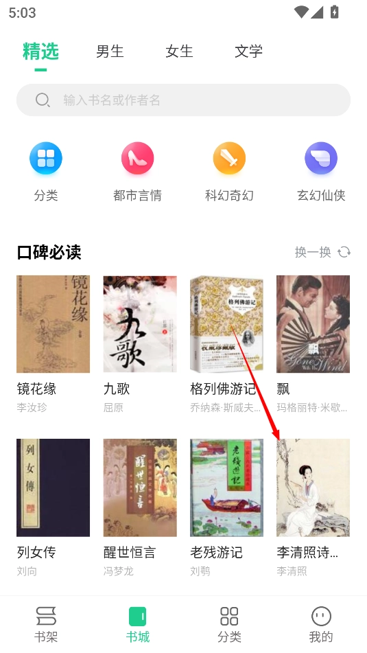 1、在中的书城页面选择一本自己喜欢的书籍