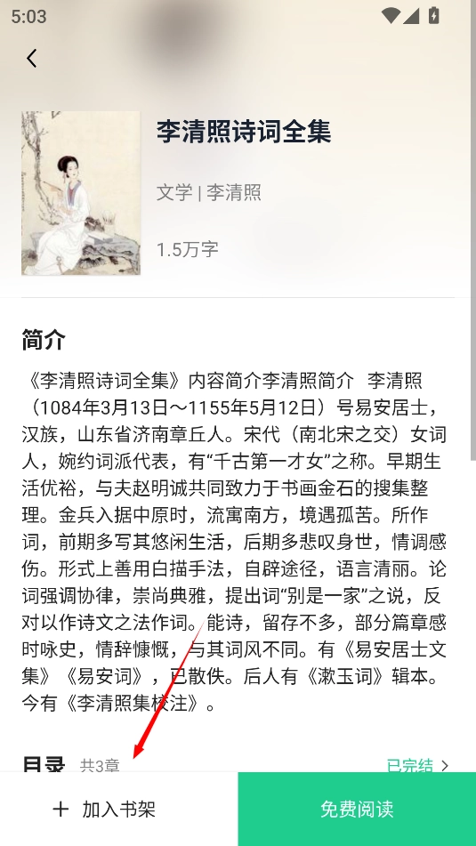 2、进入详细的页面后点击“加入书架”即可