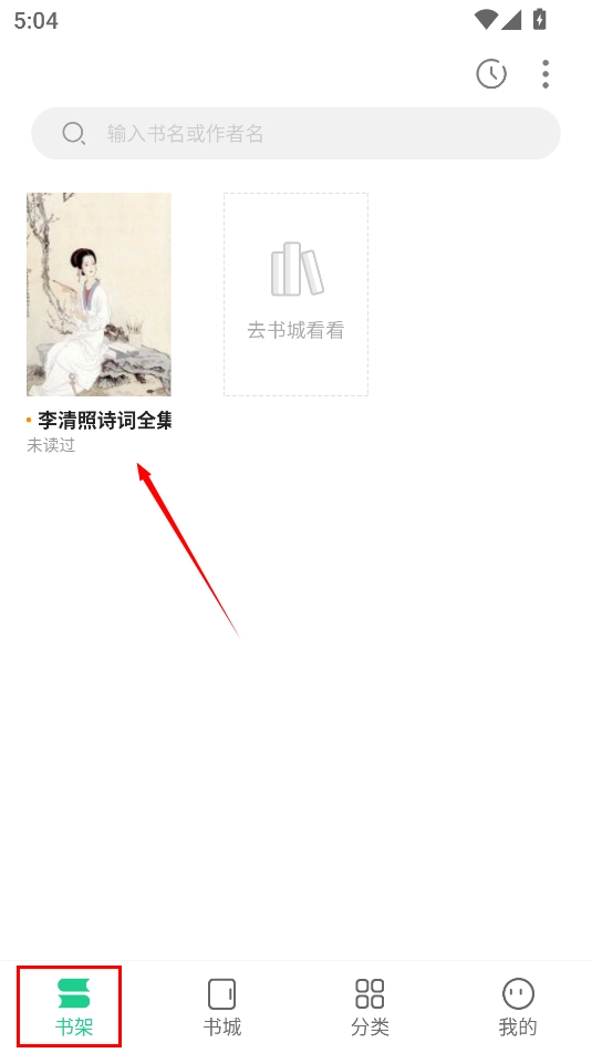 3、然后你就能的书架里看到自己收藏的书籍了