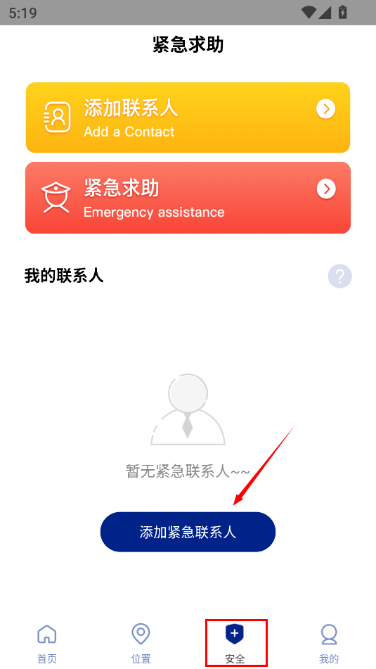1、同样的先切换到“安全”页面,点击添加紧急联系人