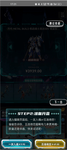 4、点击后进入的页面为抽奖页面,该页面设有单抽和五抽选项。若想查看抽奖概率,点击“查看所有商品”即可。图中的超稀有款便是奖池里的最终大奖。