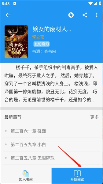 5、点击你想看的小说,进入详情页后,再点击“开始阅读”。