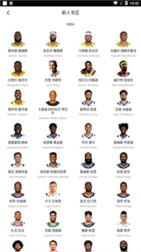 4、在此处寻找到自己心仪的球星,点击即可进入相应页面。