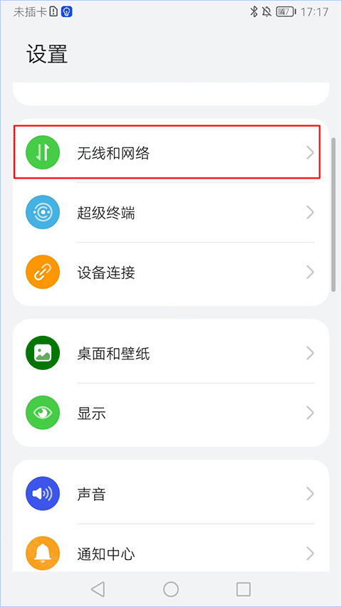 1、打开手机的设置页面,在手机的设置界面中点击“无线和网络”进入。