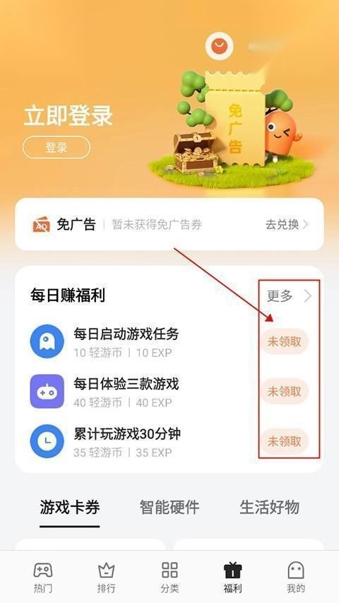 2、接下来便能瞧见上方的福利任务,完成这些任务后,即可获取轻游币。