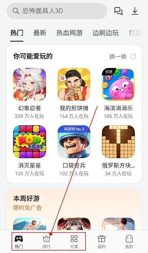 1、用户在本站打开软件后,可在分类、热门、排行榜页面中挑选一款自己想玩的小游戏。
