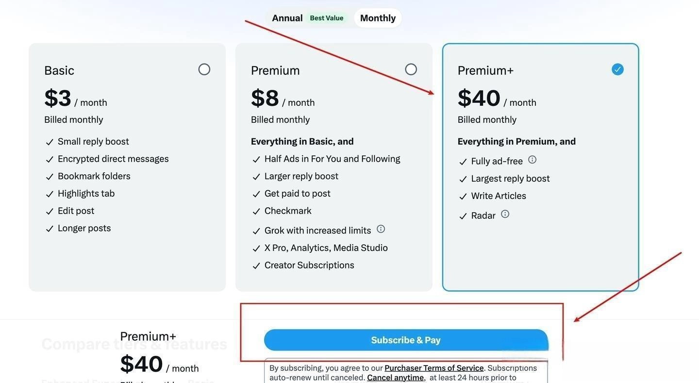 若要订阅升级“Premium +”,进入X后,点击侧边栏的“Premium”,即可进入订阅页面。