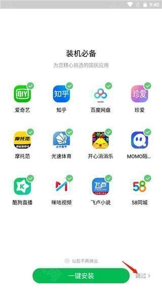 3、随即就能看到下图所示界面,用户可依据自身实际状况,选择“一键安装”或者“跳过”。