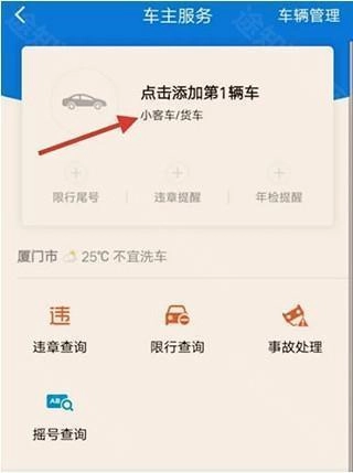 2. 接下来,依旧在个人中心位置点击“添加爱车”进行跳转。