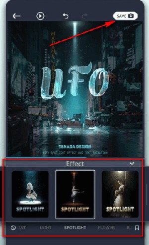 4、提供多种丰富特效供您挑选,点击右上角即可直接保存。