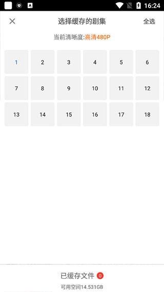 4、轻点顶部的清晰度选项,就能选择缓存的清晰度。