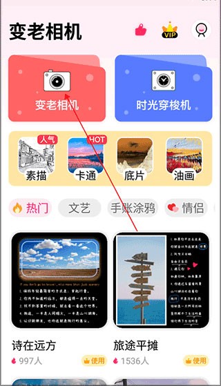 2、如图所示,在首页能够选择变老相机、时光穿梭机等功能。