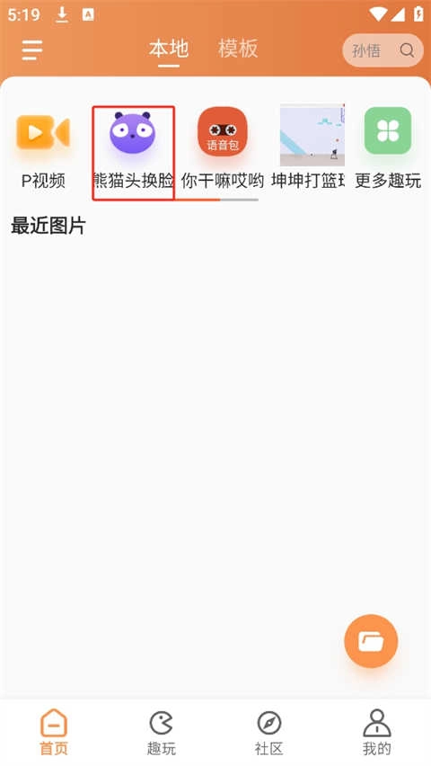 1. 进入软件首页,寻觅并点击“熊猫头换脸”这一功能。