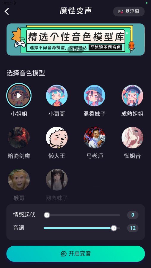 只需选择音色模型并开启变音功能,就能实现变声效果。