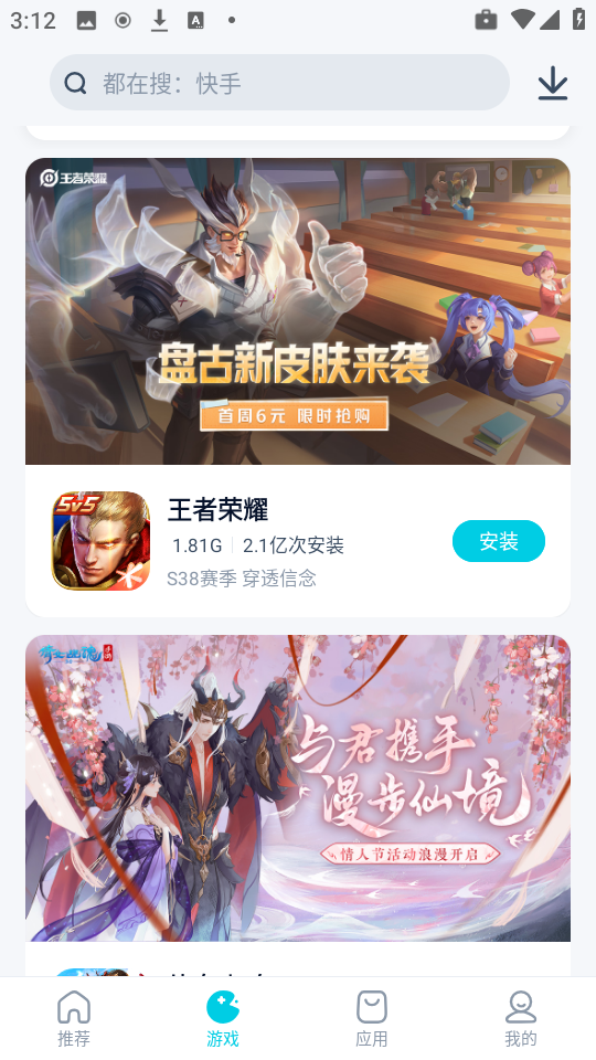 3、紧接着,点击下方导航栏里的“游戏”分类,在此以“王者荣耀”作为示例展开展示。