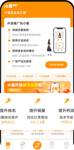 小蚕霸王餐商家版,是杭州柏鹿信息技术有限公司专为外卖商家打造的一款生活服务类软件,旨在助力商家实现高效、便捷经营。这款软件为用户配备了丰富的实用功能,像订单管理、配送跟踪、交易统计等一应俱全,其中查询订单详情的功能尤为便捷。不仅如此,软件还能为用户深度分析营销数据,让用户对营销情况一目了然。该软件致力于提升外卖商家的门店运营水平,感兴趣的朋友不妨快来体验一番。