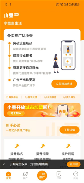 开启小蚕霸王餐商家版,轻点立即添加店铺。