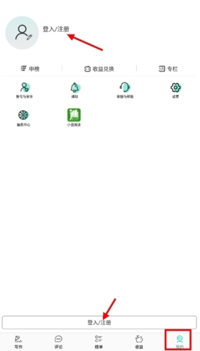 1、首先找到晋江写作助手,点击该软件后,在箭头所指的两处轻轻点击,均可实现登录操作。