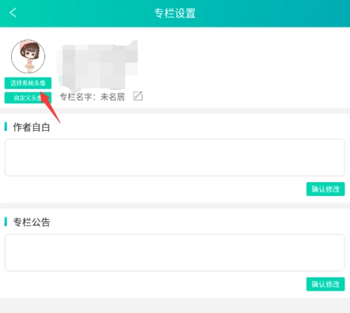 2. 在专栏设置页面,你能够选择更换头像,既可以上传自己相册里的图片,也能够挑选系统自带的头像。