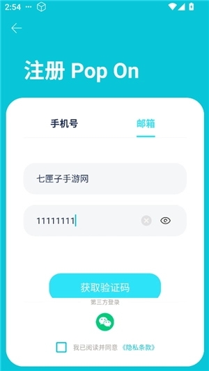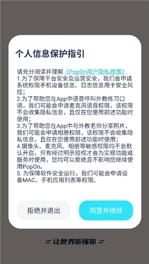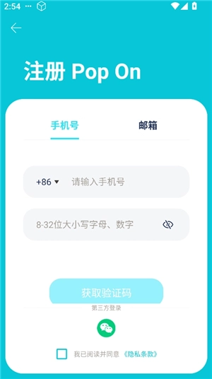 如何注册Pop On账号 1、在本页面获取Pop On软件,安装完成后打开,并同意隐私政策。