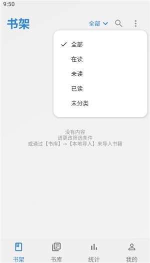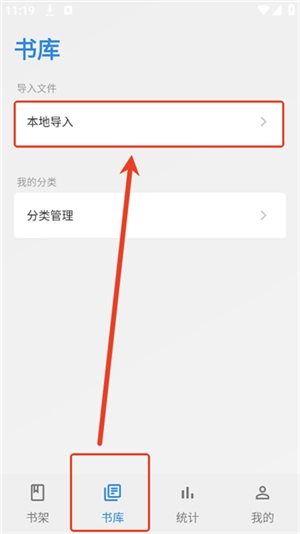 1. 打开软件,随后点击【书库】中的“本地导入”。