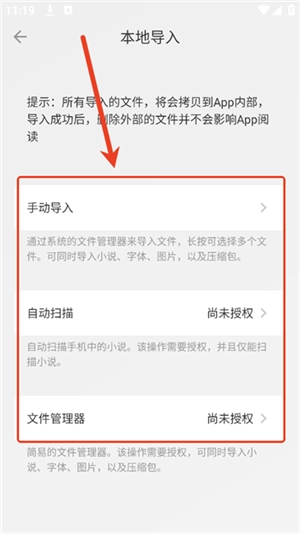 2. 导入方式多样,可选择手动导入、自动扫描、文件管理器等,在此以自动扫描为例。
