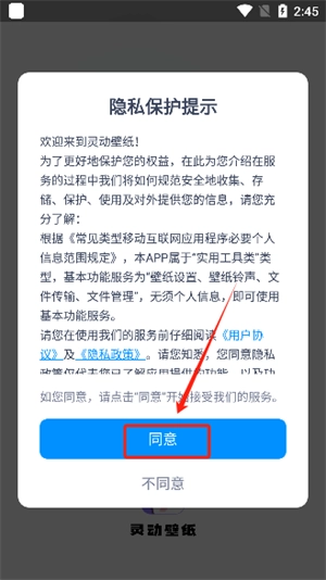 1. 开启灵动桌面壁纸,首先同意相关隐私政策。
