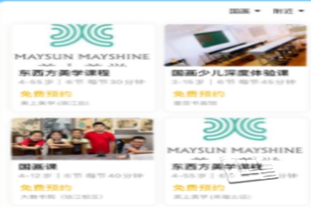 2. 各类艺术培训班的课程安排不尽相同。用户借助移动端,能够直接浏览各培训机构的所有课程内容,从而为孩子用心挑选与甄别,选到合适课程,实现更优质的学习。