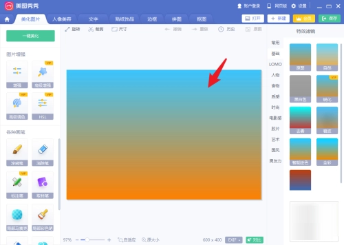 第四步:利用美图秀秀能够达成上下渐变效果,点击【渐变】选项。